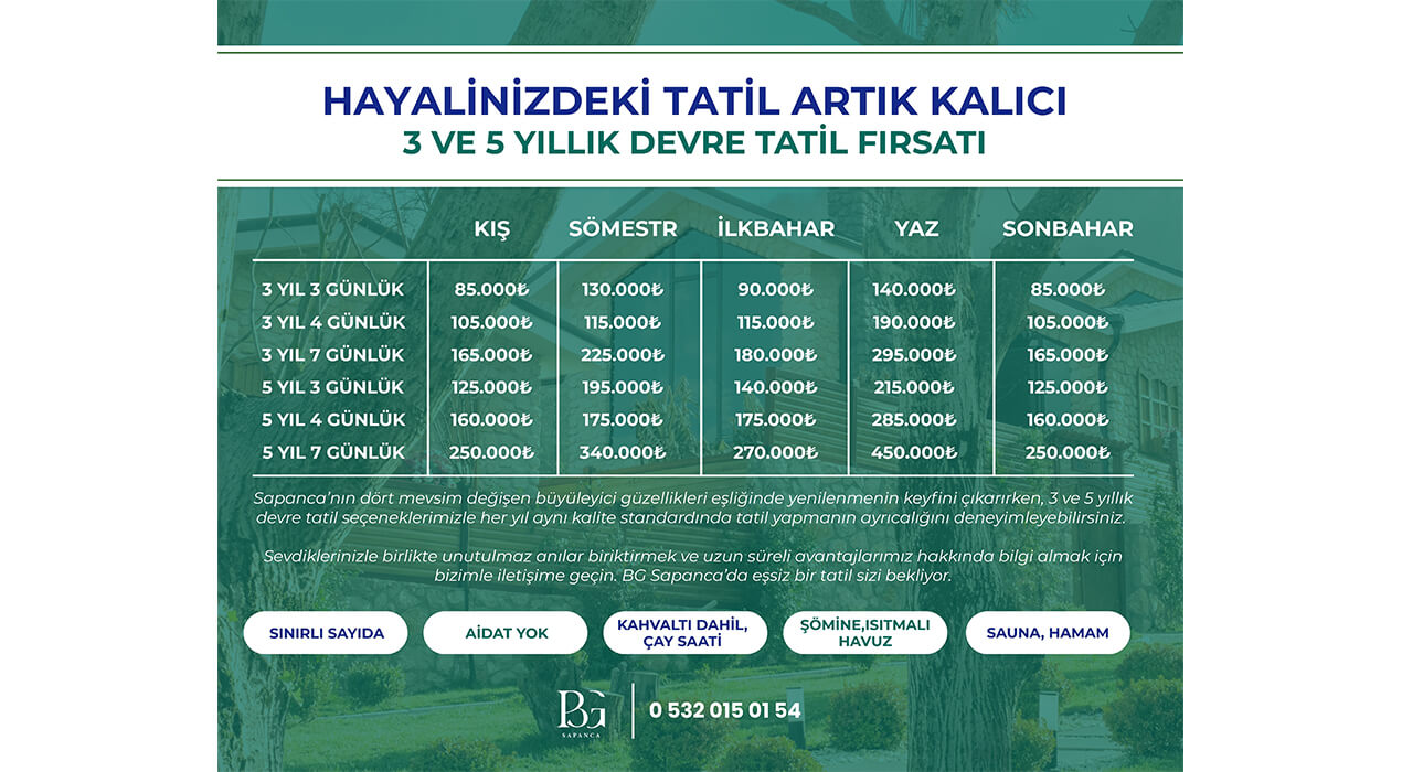 Üstelik şimdi devre tatili sistemiyle de 3 veya 5 yıllık süre seçenekleri ile yılın her döneminde bu deneyim artık sizlere ait.